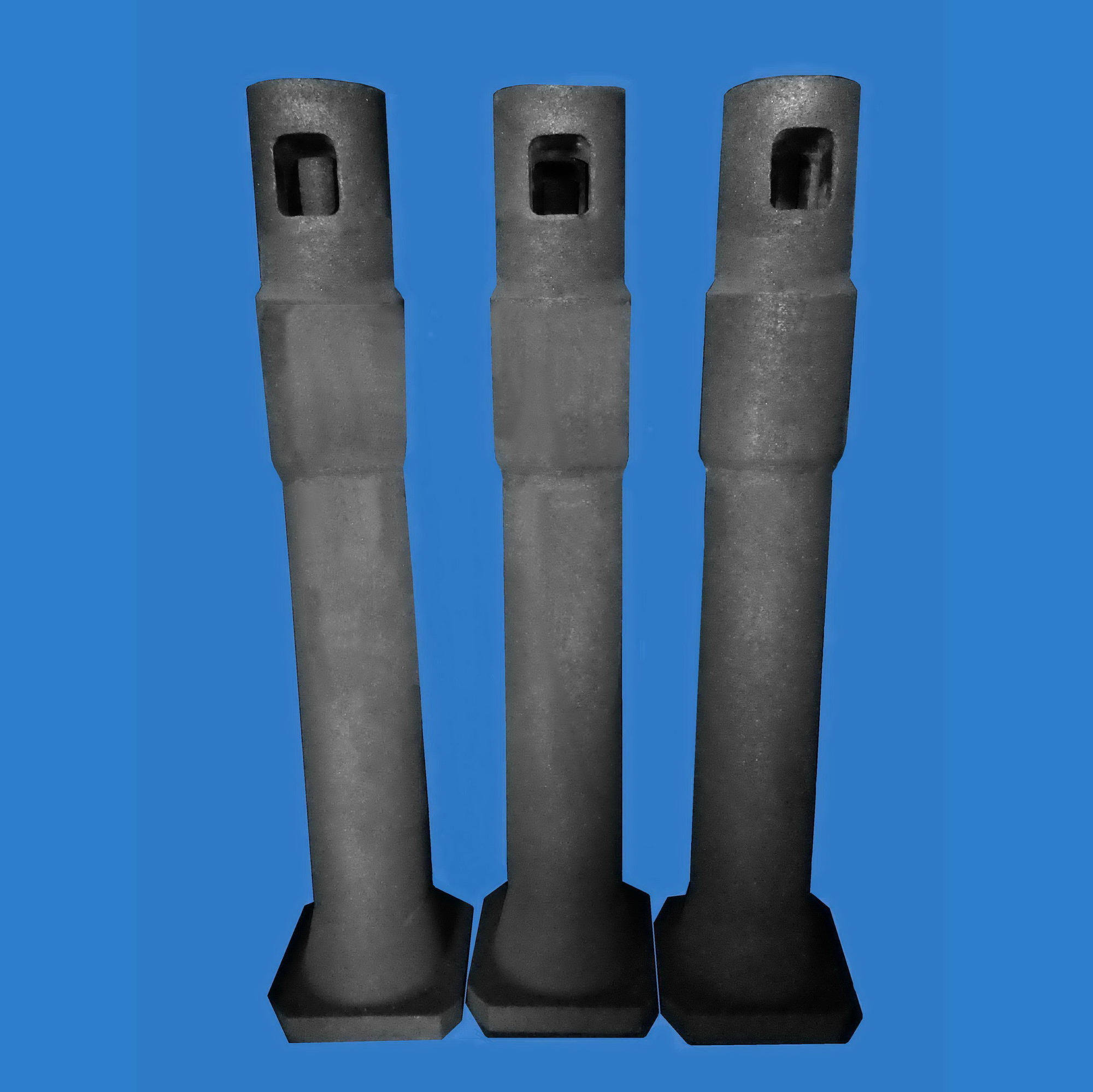 鋁鋯碳雙孔水口主要應用于連鑄煉鋼生產過程中的板坯類鋼坯的生產。在渣線部位的加粗設計,可以大大提高水口的耐用性,延續使用時間,從而提高生產效率、降低生產成本。
